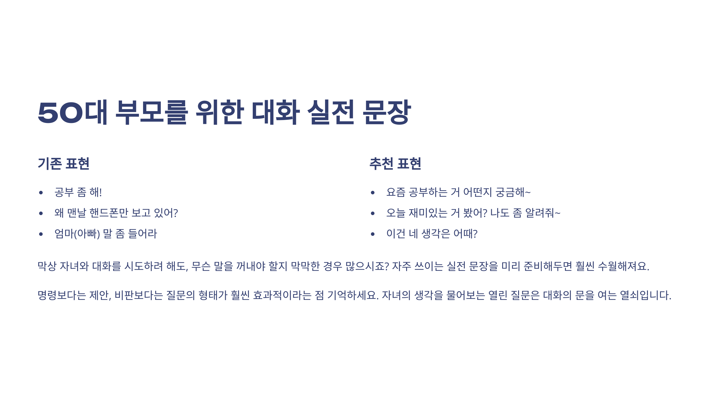 50대 부모를 위한 대화 실전 문장
