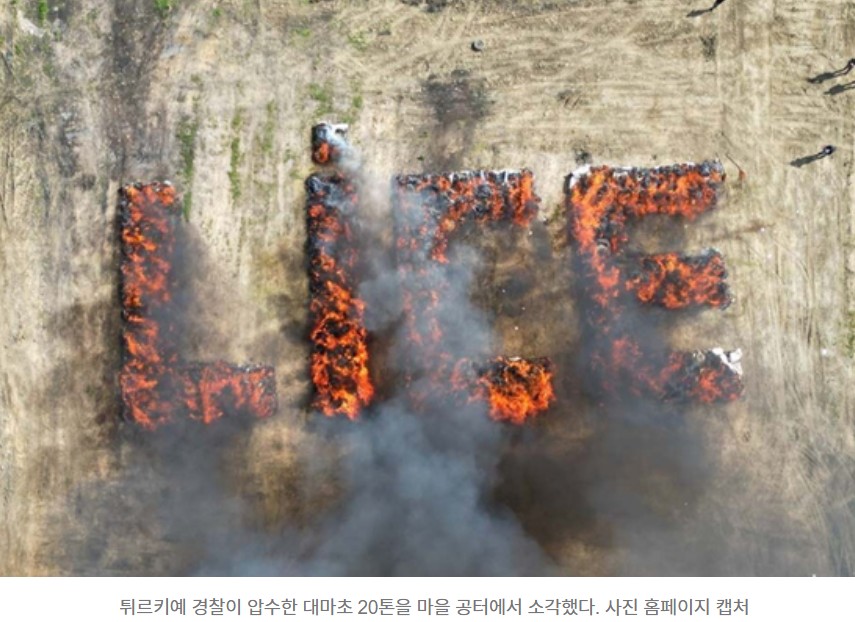 튀르키예 경찰은 2023년부터 2024년까지 대대적인 마약 단속 작전을 벌여 총 226건의 수사를 통해 대마초 20톤을 압수했습니다. 이를 상징적으로 처리하고자 한 퍼포먼스는 꽤나 극적이었습니다. 바로 마을 이름인 'LICE'를 대마 자루로 형상화해 설치한 후, 거기에 무려 200ℓ의 휘발유를 붓고 불을 지핀 것이죠. 이는 단순한 폐기 행위가 아닌 '성과 과시'였던 셈입니다.