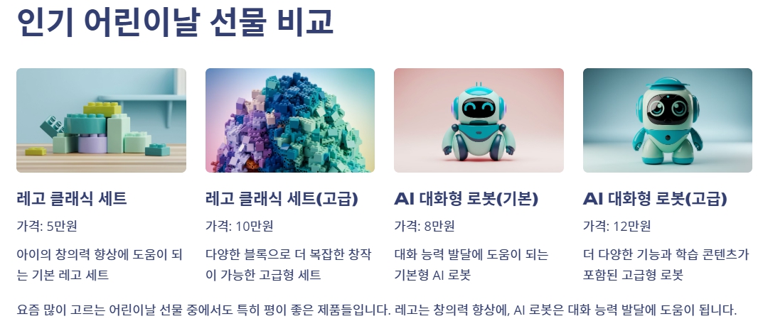 인기 어린이날 선물 비교표