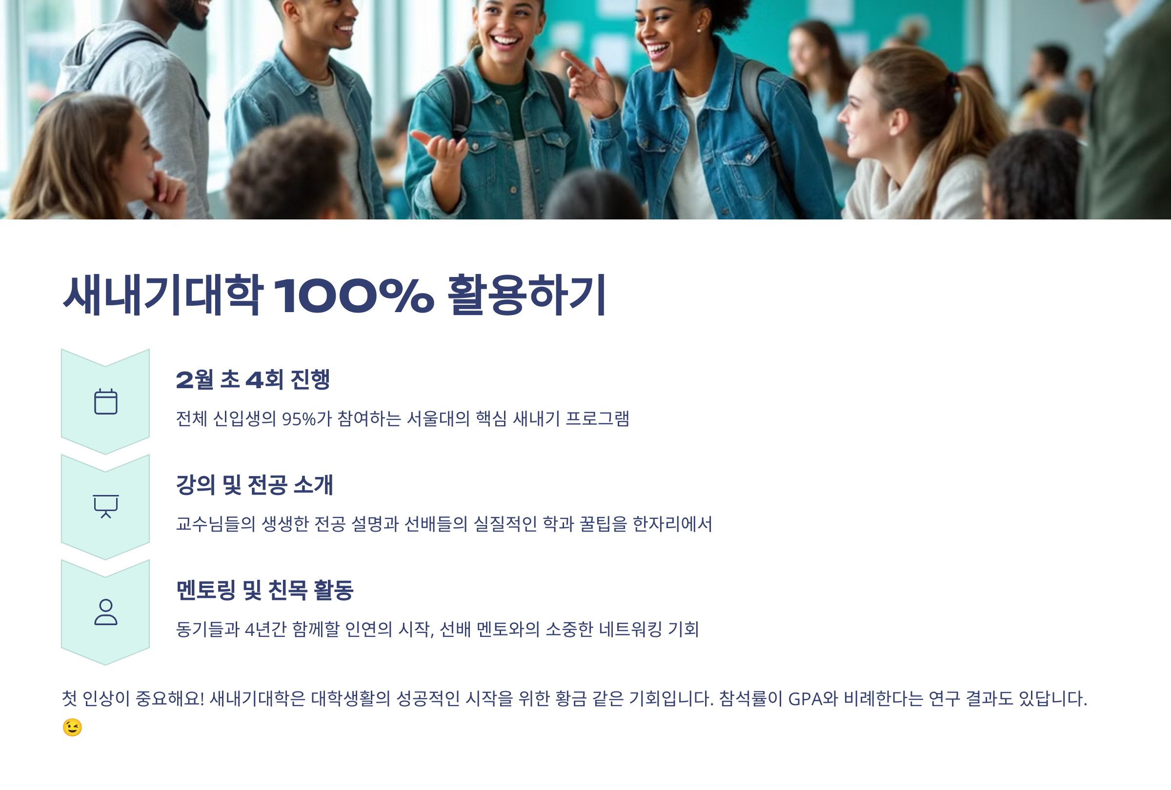 서울대학교는 매년 신입생을 위한 ‘새내기대학’을 운영해요! 🎓